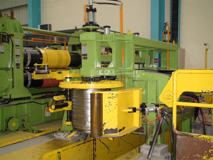 雙邊馬達驅(qū)動垂直梭動卷取式廢邊卷取機由電機及減速傳動機構(gòu)、轉(zhuǎn)盤式卷取機構(gòu),液壓漲縮機構(gòu)組成。廢邊卷取機對縱剪切下的廢邊進行收卷。張力卷取機配置在機組兩側(cè),采用電機驅(qū)動與主速度同步。