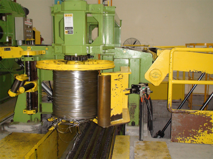 雙邊馬達驅(qū)動垂直梭動卷取式廢邊卷取機由電機及減速傳動機構(gòu)、轉(zhuǎn)盤式卷取機構(gòu),液壓漲縮機構(gòu)組成。廢邊卷取機對縱剪切下的廢邊進行收卷。張力卷取機配置在機組兩側(cè),采用電機驅(qū)動與主速度同步。